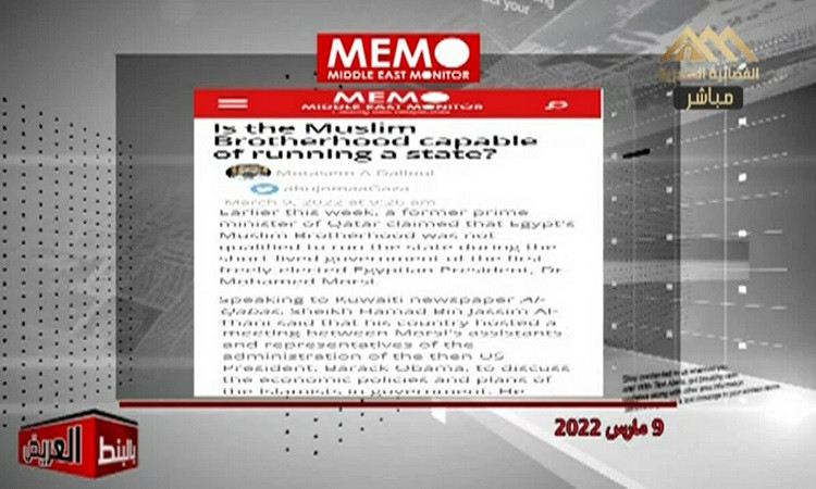 كما سبق للموقع نفسه أن نشر في 9 مارس 2022 مقالًا بعنوان "هل الإخوان المسلمون قادرون على إدارة دولة؟" للكاتب الفلسطيني معتصم دلول، ناقش فيه قدرات الجماعة السياسية، وذلك في أعقاب تصريحات أدلى بها الشيخ حمد بن جاسم لصحيفة القبس، تحدث فيها عن تقييمه لتجربة حكم الجماعة.